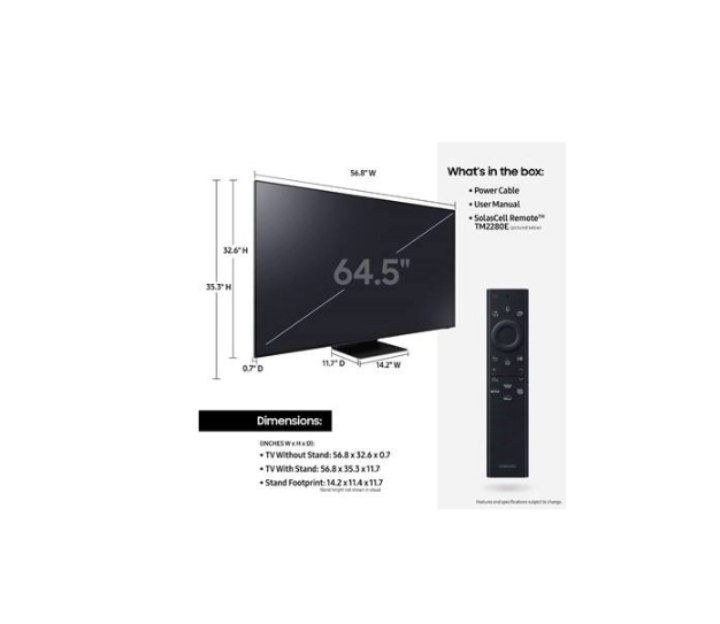 طراحی ظاهری یکی از مهم ترین ویژگی هر محصول است. اولین چیزی که به چشم می خورد ظاهر و نمای محصول می باشد. تلویزیون سامسونگ 65Qn800b دارای صفحه نمایش تخت به رنگ مشکی که زیبا و شیکی طراحی شده است. رنگ بدنه تلویزیون نیز مشکی است که تابع هر دکوراسیون و سلیقه ای می باشد. تلویزیون هوشمند سامسونگ 65Qn800b دارای پایه ای به رنگ مشکی در وسط برای نگهداری تلویزیون بر روی میز که نمای منزل شما را به نحوه ای زیبا و شیک می ‌کند.