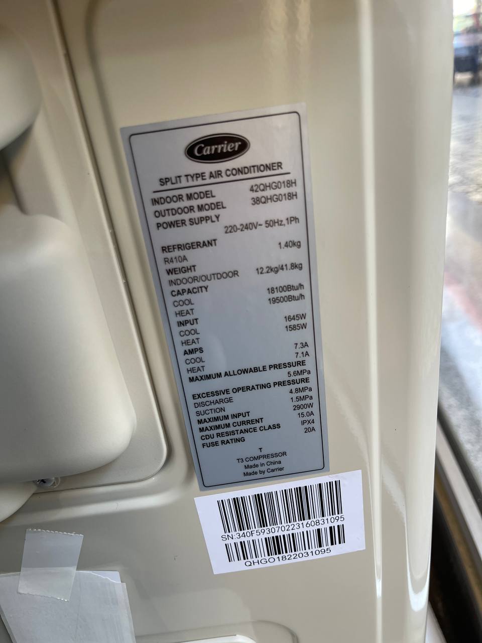 کولر گازی کریر 18000 T3 آمریکایی R410